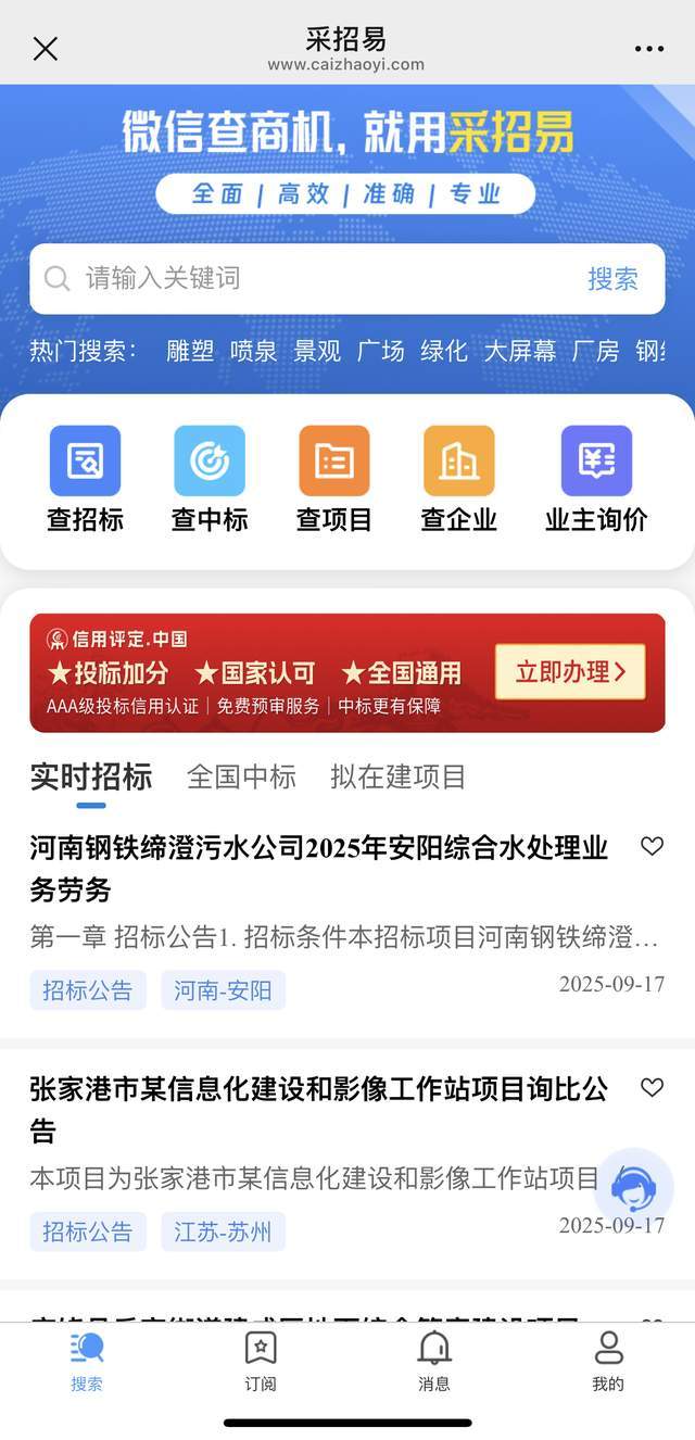 核心功能:涵盖工程建设、机电产品、政府采购等全品类依法必招项目,可查询招标公告、中标公示、变更公告、澄清说明等全流程信息;2025年升级移动CA互认功能,手机扫码即可参与全国投标,内置企业信用查询功能,能一键规避合作风险;同时实时更新招投标相关政策法规,方便企业了解最新投标要求。